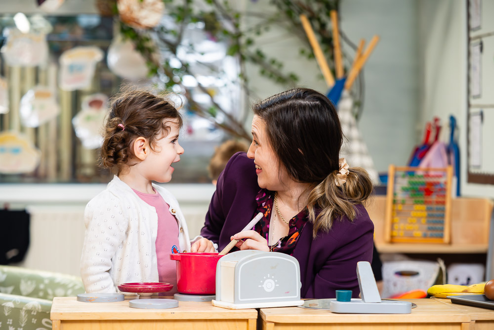 As part of their preparation for Reception, we gradually integrate the nursery children with the Reception class and the broader school environment. They join the Reception, Year 1&2 for lunch in the hall every day, and later in the year, they will begin joining the Reception class during playtimes. Our Reception teacher, Mrs. Ingle-Illes is a familiar and welcoming presence in the nursery. She often visits for informal chats and, towards the end of the year, leads story times and activities to help the children feel comfortable and prepared for their transition to Reception.